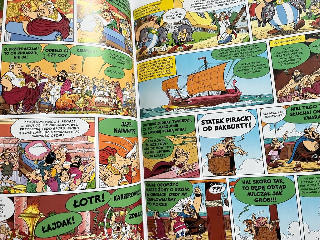 Polskie tłumaczenie trzyma charakter Asteriksa. Realia i dowcipy są przeniesione tak, by nie gubić gry słów. W nowym wydaniu na plus wypada też komfort lektury. Twarda oprawa i porządny druk robią swoje, a blok dodatków pozwala „zostać” z albumem dłużej niż na jedno popołudnie. To dobra propozycja dla tych, którzy już kolekcjonują serię, ale też dla nowych czytelników – „Niezgoda” jest samodzielna i nie wymaga znajomości wszystkich tomów.