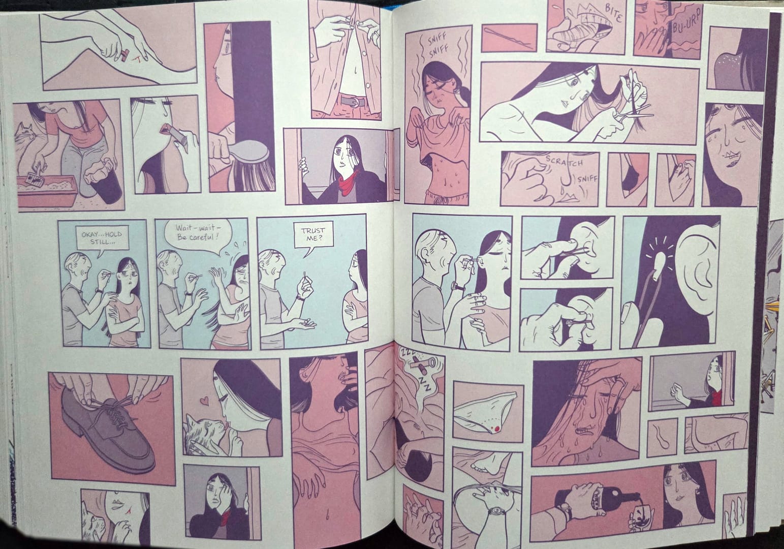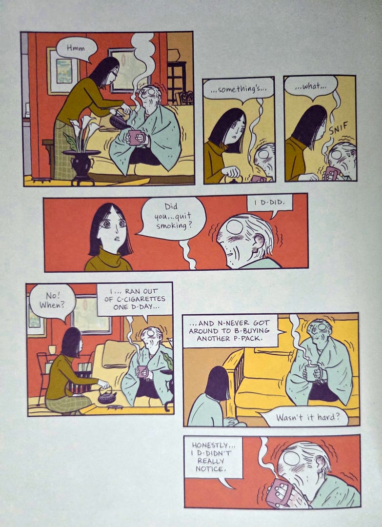 Dlaczego? Bo z tego, co udało mi się ustalić, wydanie tego komiksu to nie jest zwykła robota pod tytułem: kupić licencję, przetłumaczyć, złożyć i wydrukować. Oryginalna edycja została pomyślana przez autora jako całość, w której znaczenie mają nie tylko fabuła i rysunek, ale też format, oprawa, papier, kolor i typografia. Sam album wydrukowano na papierze z recyklingu, a cała jego fizyczna forma została zaprojektowana z ogromną świadomością. Papier nie jest tutaj neutralnym nośnikiem. Wpływa na odbiór barw, ton całego wydania i jego fakturę.