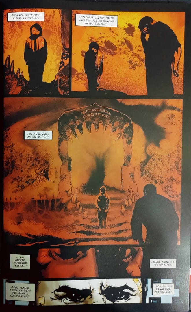 Warstwa graficzna to absolutny majstersztyk grozy. Stevan Subic tworzy styl ekspresjonistyczny, brudny, momentami wręcz odpychający - i właśnie dlatego tak skuteczny. Jego kreska jest nerwowa, rozedrgana, pełna niepokoju. Postacie nie są ładne. Bruce Wayne wygląda na wycieńczonego, a Batman przypomina masywną, czarną bryłę pochłaniającą światło. To nie heros w lśniącej zbroi, lecz demon walczący z innymi demonami.