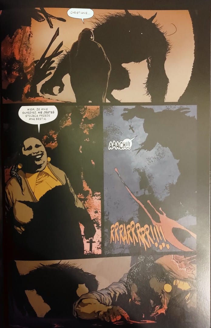 A sam wilkołak? To jednocześnie bestia i ofiara. Jedna z ciekawiej skonstruowanych postaci w tym komiksie.