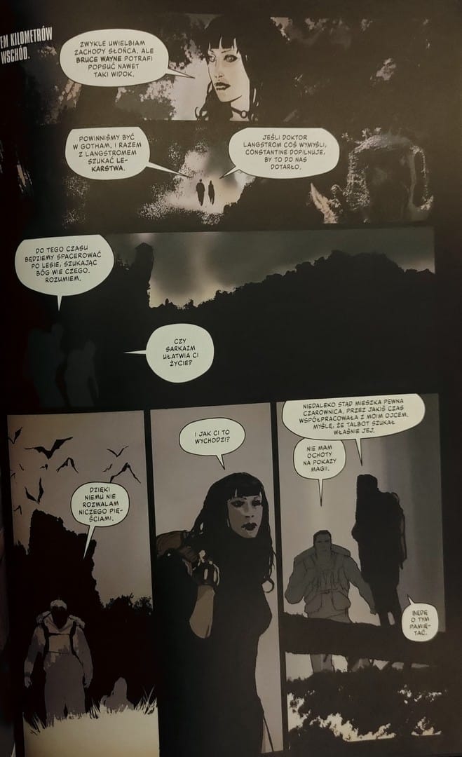 Zatanna zmienia ton opowieści z kryminału w horror okultystyczny. Nie jest sceniczną maginią w cylindrze, lecz przewodniczką po świecie klątw. To ona uświadamia Batmanowi, że walka z wilkołakiem nie dotyczy ciała, lecz czegoś znacznie starszego i głębszego. Jej dialogi są melancholijne, pełne fatalizmu, a relacja z Bruce’em napięta i niekomfortowa.