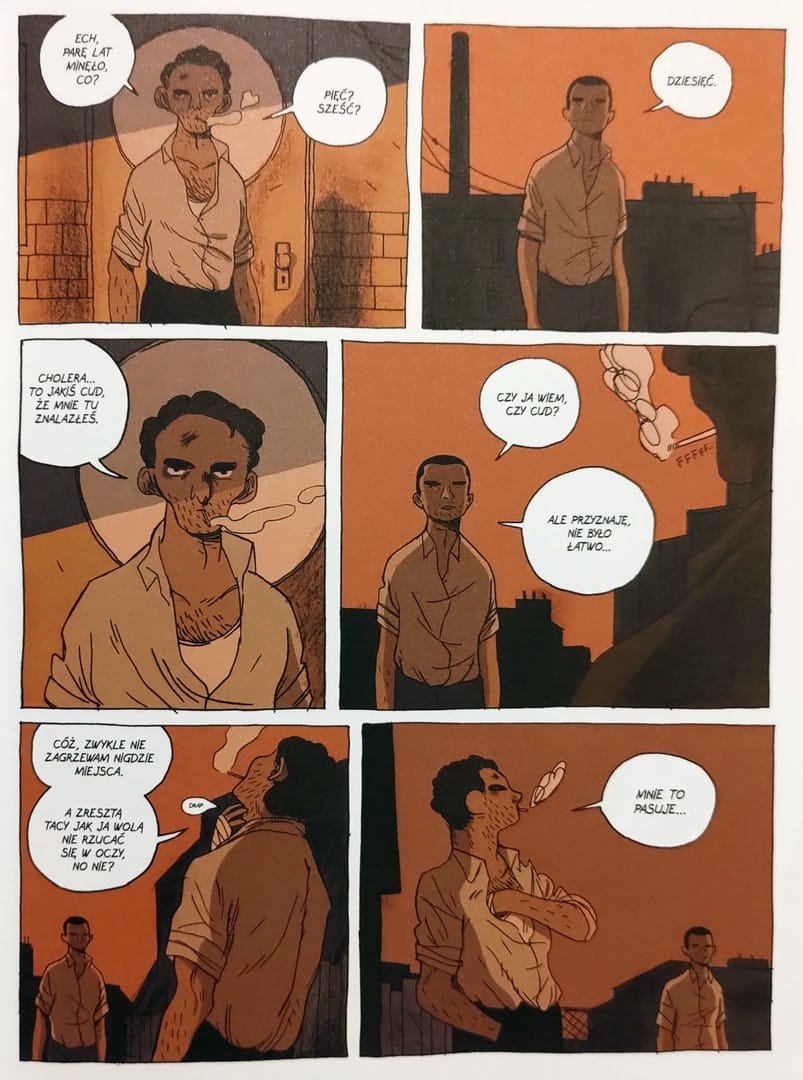 Kolory budują nastrój, niosą emocje poznawanej historii. Ciepłe tony pojawiają się tam, gdzie budzi się nostalgia; natomiast chłodne – w momentach napięcia i milczenia. Widać, że Alfred myśli jak malarz i reżyser jednocześnie. Potrafi prowadzić wzrok czytelnika, zatrzymać go tam, gdzie trzeba, pozwolić mu oddychać wraz z bohaterami.