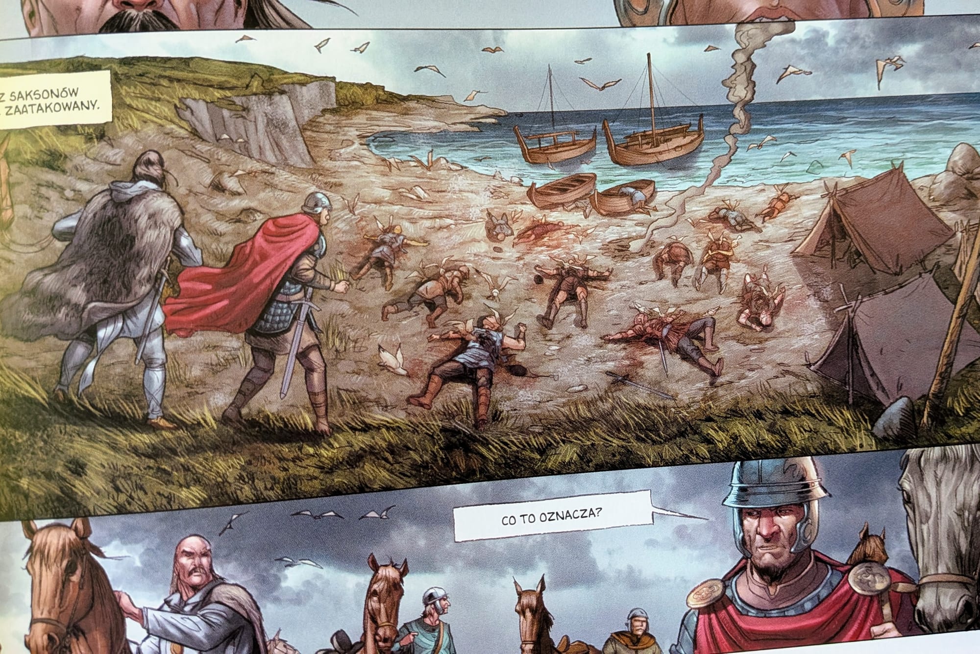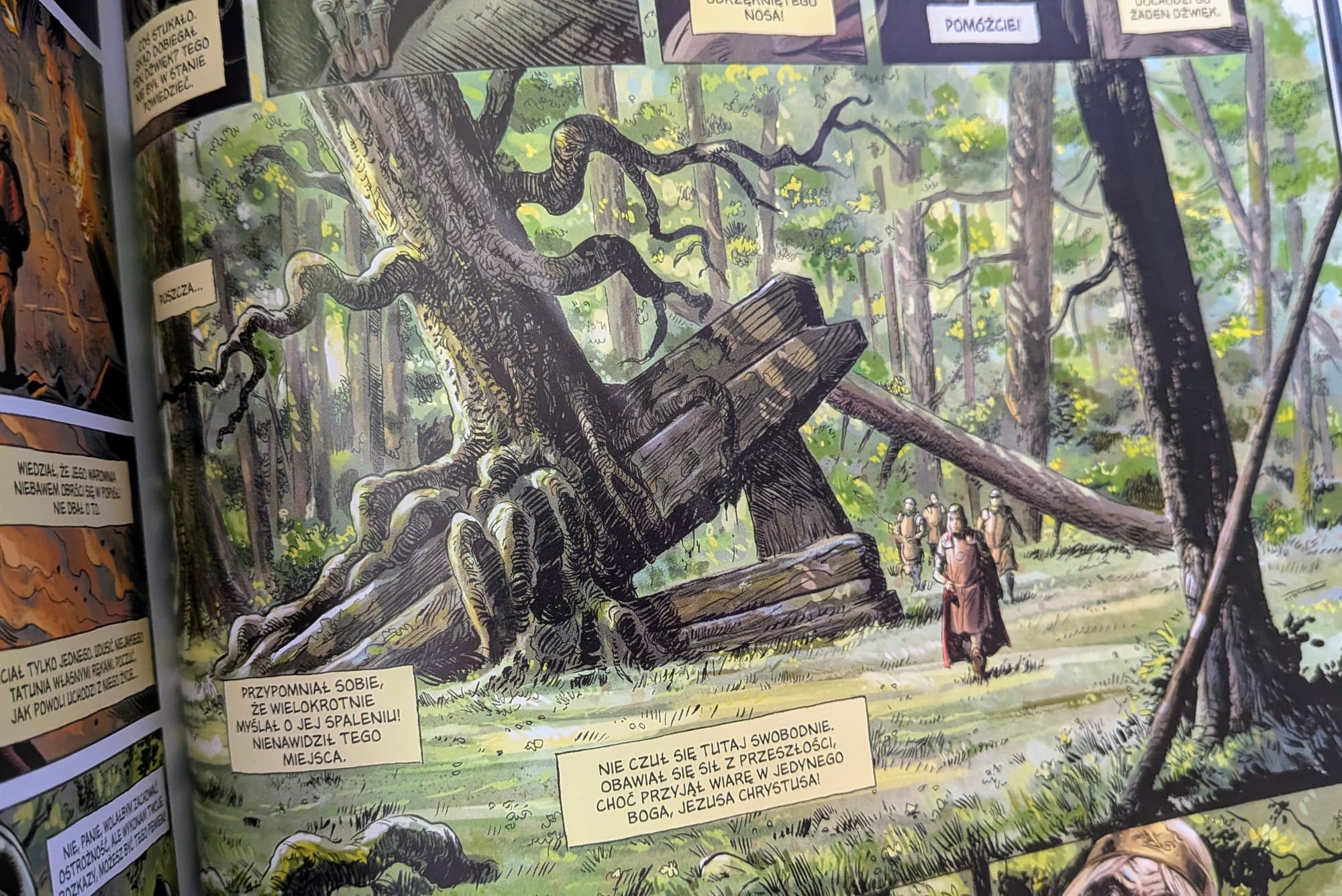Wróćmy jednak do druidów. Komiks pokazuje konflikt ostro i widowiskowo, choć rzeczywista przeszłość była zapewne bardziej skomplikowana — chrześcijaństwo nie tylko niszczyło dawny porządek, ale też przerabiało go i przejmowało jego elementy. Zresztą część dawnej tradycji celtyckiej dociera do nas już przez filtr chrześcijańskich redaktorów, więc nawet to, co „wiemy", nie jest takie proste. Zamiast czarno-białego starcia dostajemy opowieść o długim, brutalnym przechodzeniu jednego świata w drugi.