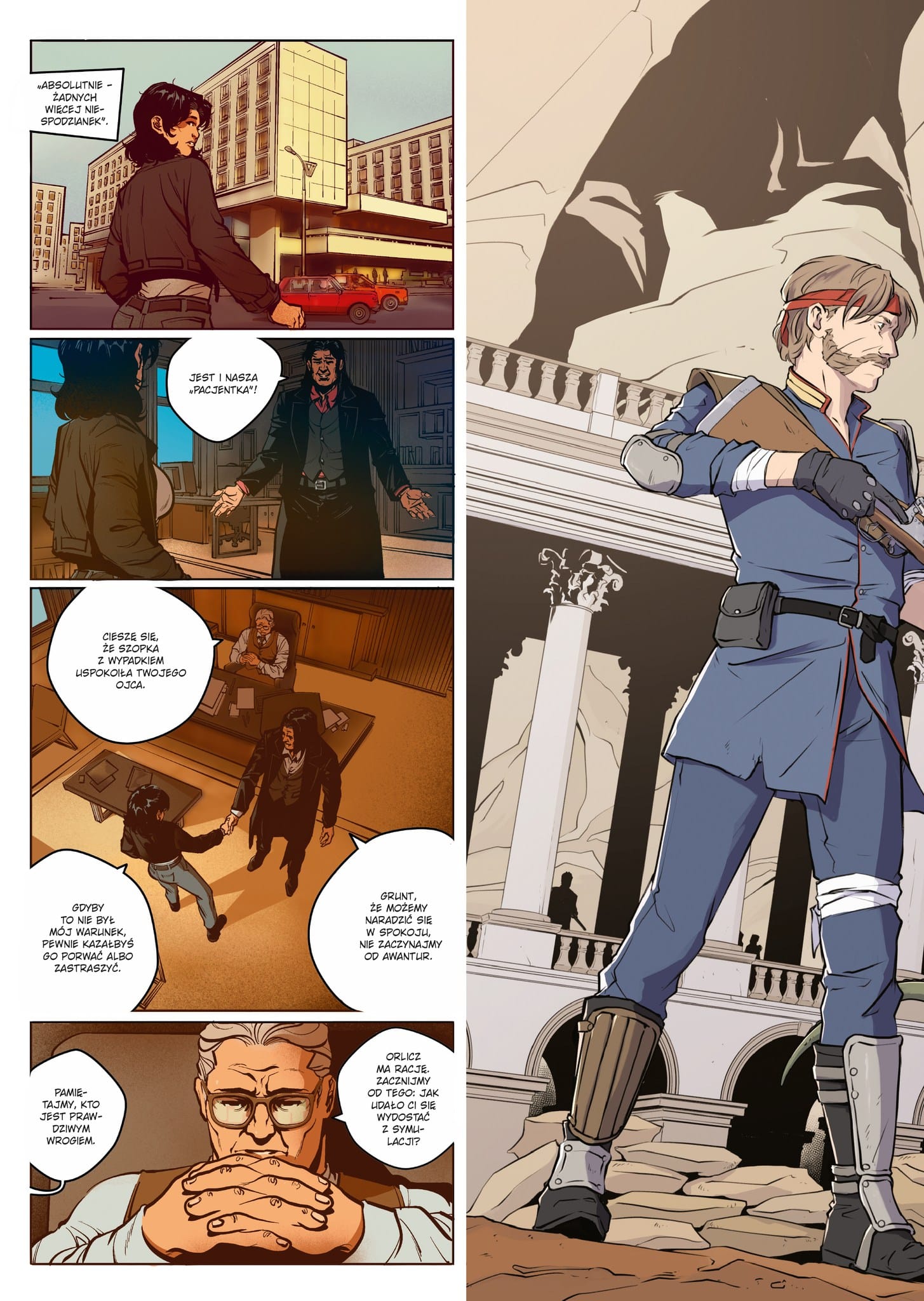 Po ucieczce z symulacji stworzonej przez kosmitów licealistka Ewa poznaje przeszłość Inżyniera Sobieraja i wampira Orlicza. Od stulecia obaj mężczyźni toczą walkę z najeźdźcami, przygotowując obronę w kraju i tropiąc wyznawców Obcych za granicą. Czy konspiracja naprawdę rozciąga się od Warszawy, przez Wiedeń, aż po Wenecję? Ponowne spotkanie Sobieraja i Orlicza przywołuje jednak bolesne wspomnienia. Dlaczego Inżynier nienawidzi człowieka, który uwolnił go z iluzji kosmitów? Czy zdołają odłożyć urazy, gdy Ewa odkryje, że ich misterny plan walki jest skazany na porażkę?