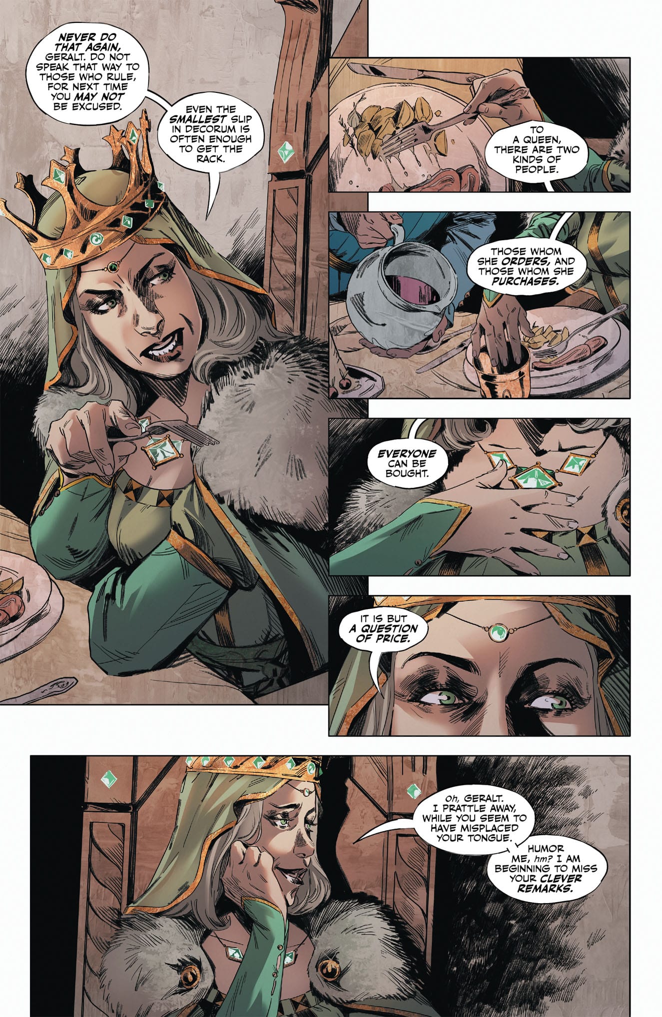 „Kwestia ceny” przenosi na plansze słynny epizod z ucztą w Cintrze i prawem niespodzianki. To tutaj splata się los Geralta i Ciri. Za komiks odpowiada zespół twórców pracujący przy amerykańskiej edycji: scenariusz adaptacji przygotowała Marta Krajewska, rysunki narysował Matteo Bellisario, za kolory odpowiada Igor Monti, a liternictwo wykonał Hassan Otsmane-Elhaou. Okładkę namalował Kai Carpenter.