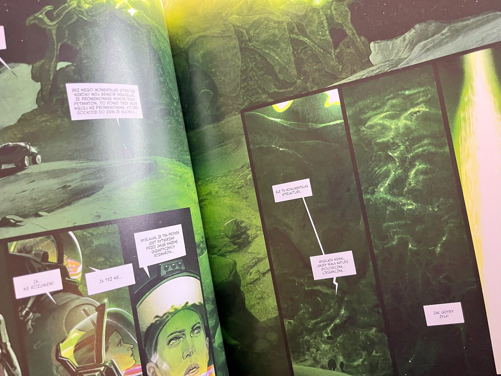 Tempo jest równe i jasno prowadzone - każdy akt kończy się wyraźnym progiem, a poszczególne zwroty wynikają z pracy bohaterów, a nie z przypadku. „Eternum” czyta się trochę jak thriller inżynierski z elementami kosmicznej grozy. Jednak groza nigdy nie wchodzi na pierwszy plan, bo ważniejsze od samego zagrożenia są pytania, które ono wymusza. Finał domyka główne wątki i nie zostawia sztucznie otwartej furtki, co w czasach rozpychających się cykli bywa wręcz ulgą. Jako całość album daje poczucie, że mieliśmy do czynienia z historią pomyślaną od pierwszej do ostatniej strony. Można się spierać, czy nie zabrakło miejsca na mocniejszy akcent emocjonalny albo na bohatera, który wyraźnie wysunąłby się na plan pierwszy. Mnie to jednak nie przeszkadzało.
