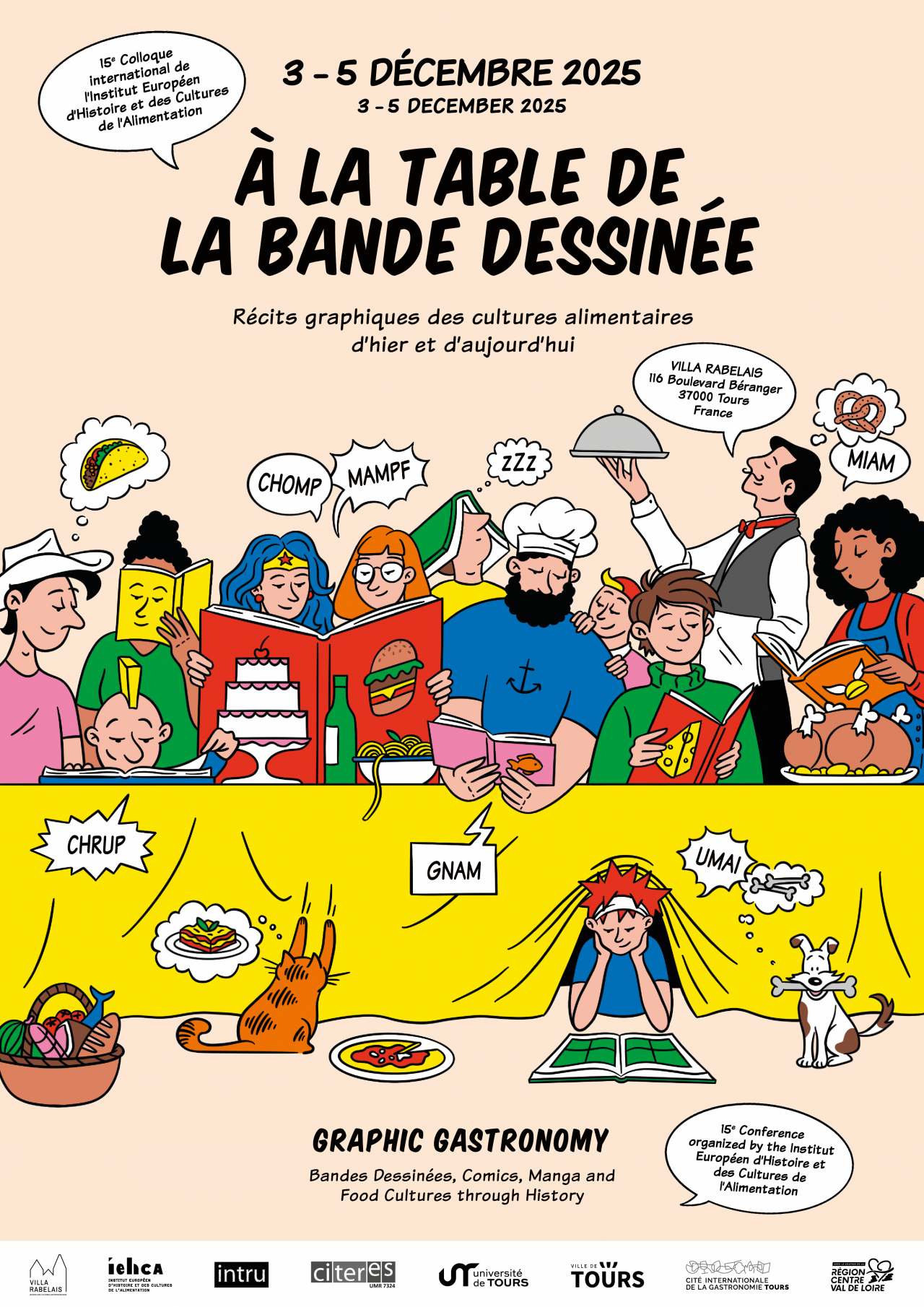 W dniach 3–5 grudnia 2025 roku w Villa Rabelais w Tours odbędzie się piętnasta edycja międzynarodowej konferencji organizowanej przez European Institute for the History and Cultures of Food (IEHCA). Hasło tegorocznego spotkania brzmi „Graphic Gastronomy. Bandes Dessinées, Comics, Manga and Food Cultures through History” i skupia się na związkach komiksu z jedzeniem, kuchnią i kulturami żywieniowymi w perspektywie historycznej.
