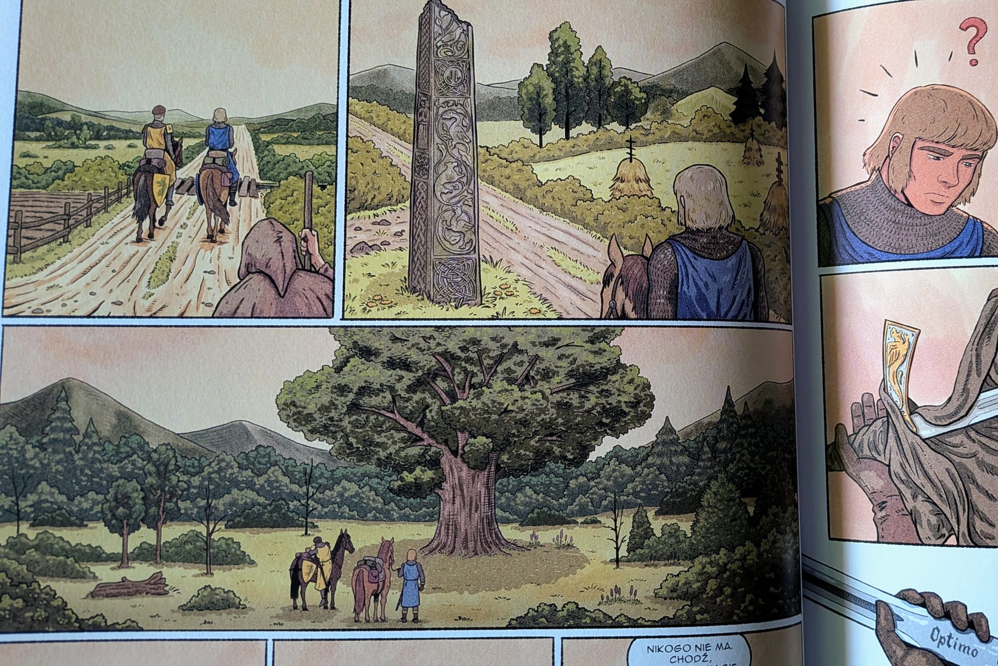 Graficznie „Haerelands" wypada solidnie. Komiks jest ładny, przejrzysty i starannie narysowany, choć raczej klasyczny — bez formalnych fajerwerków ani popisów, które miałyby same w sobie przykuć uwagę. Dla mnie to akurat plus: wszystko jest czytelne, dobrze rozplanowane i podporządkowane historii. Rysunki budują klimat, ale nie próbują za wszelką cenę wychodzić na pierwszy plan. Widać, że twórcy wiedzą, jaki efekt chcą osiągnąć, i konsekwentnie się tego trzymają.