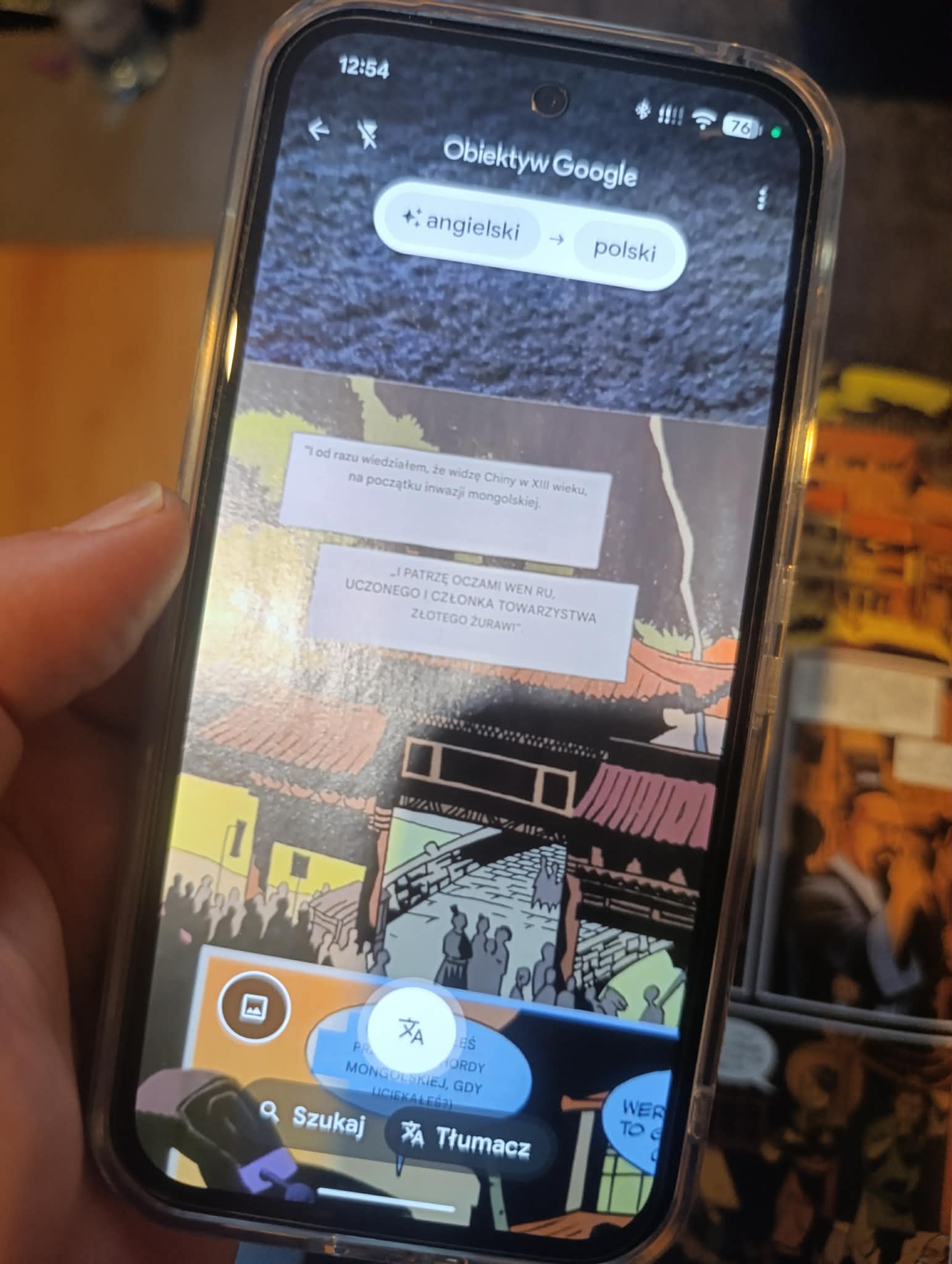 Najprostszy patent to tłumaczenie kamerą. Wtedy czytacie normalnie, a telefon pomaga wam tylko w tych dymkach, które naprawdę blokują zrozumienie.