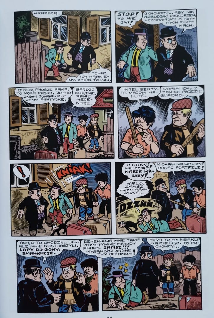 Janusz Christa po raz kolejny udowadnia, że świetnie odnajduje się nie tylko w realiach słowiańskich grodów, ale i na uliczkach PRL-u. Drugi tom jest bardziej spójny, dojrzalszy i intensywniejszy od poprzednika. Ma lepsze tempo, głębszą intrygę i mocniejszą konstrukcję emocjonalną. Największym atutem pozostaje struktura całej opowieści. To rzadki przykład komiksu dla młodzieży, który potrafi trzymać czytelnika w napięciu niczym dorosły kryminał. Humor sytuacyjny, wynikający z nieprzerwanych pomyłek i pecha bohaterów, jest ponadczasowy i szczerze bawi. Rewelacyjnie oddana jest również atmosfera zaszczucia, w której trudno odróżnić sojusznika od przeciwnika. Strony przewracają się same.
