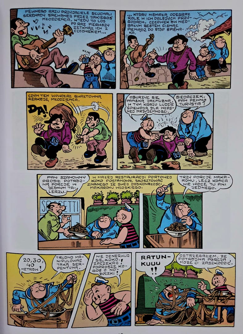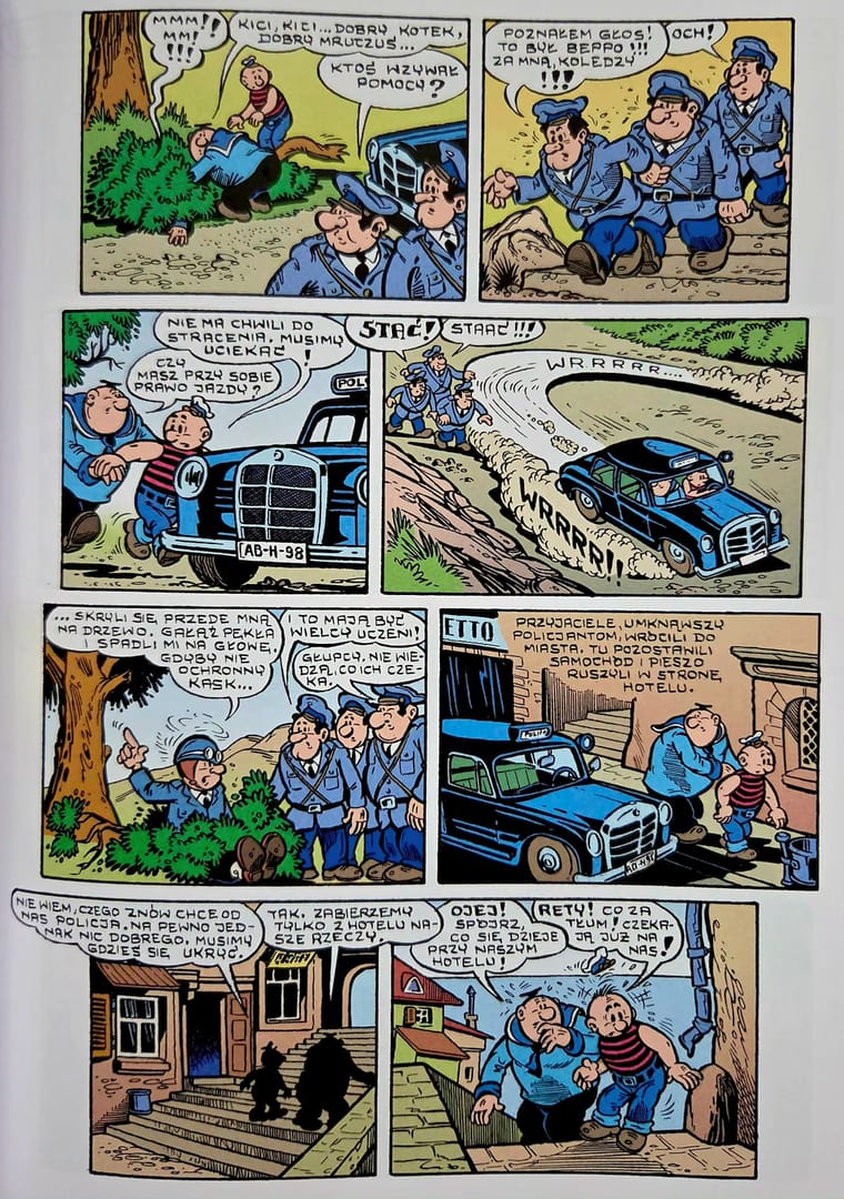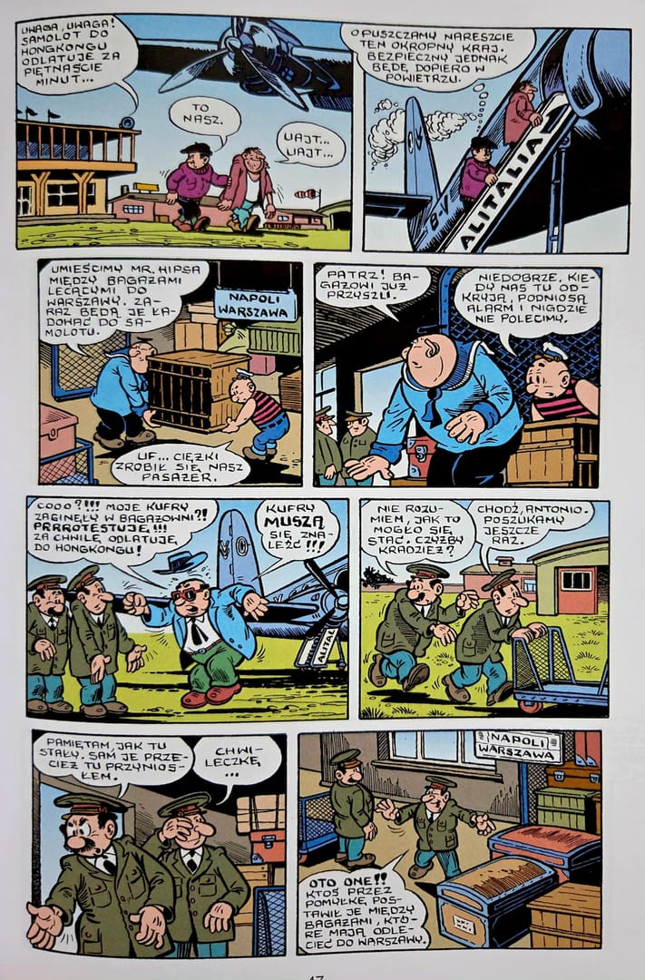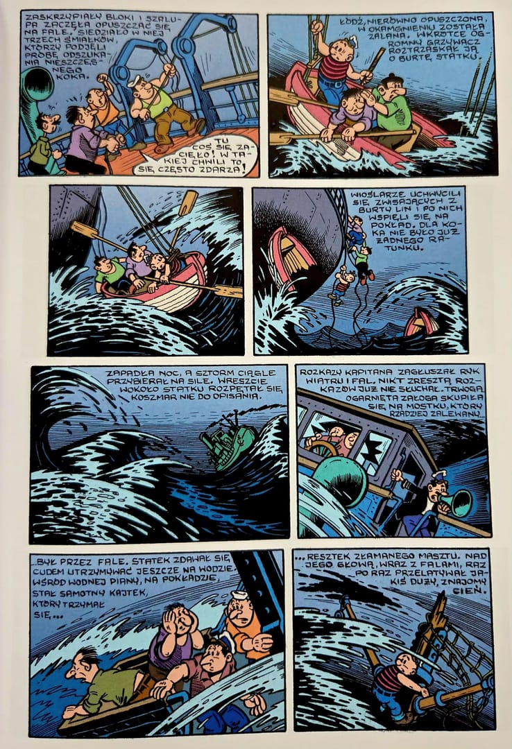 Jak pisałem już na początku, nie czytałem poprzednich wydań, a przede wszystkim oryginalnych pasków z „Wieczoru Wybrzeża”. Ale gdy popatrzy się na udostępnione plansze z pierwotnych wydań, widać wyraźnie, że najnowsza edycja, w porównaniu z czarno-białymi kadrami, sprawia, iż komiks nabiera nowego życia.