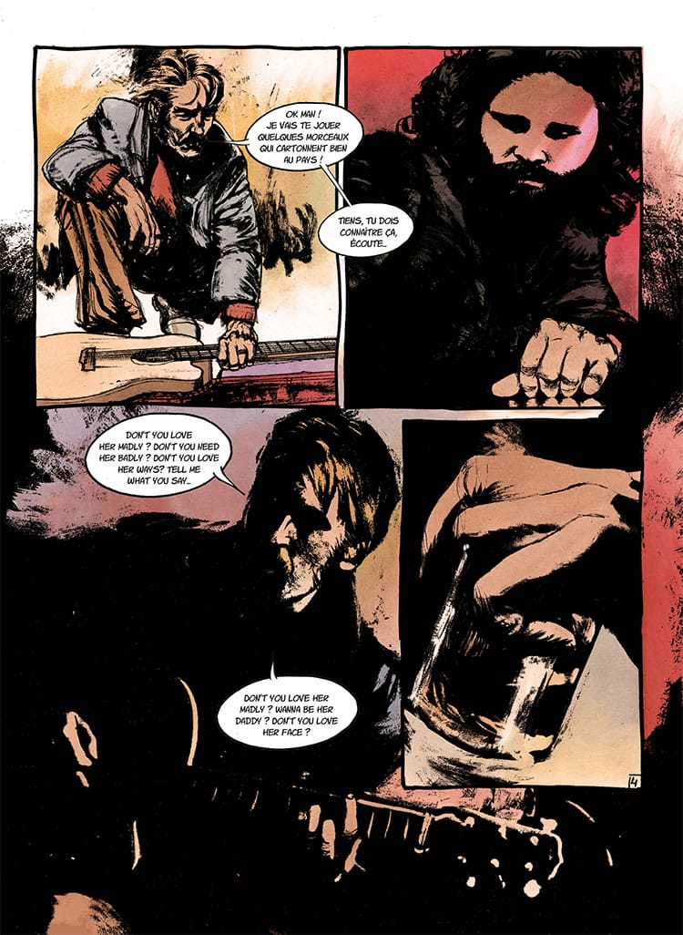 Na Bedetheque czytamy, że akcja zaczyna się, gdy 27-letni Morrison błąka się po Paryżu, wspomina początki poezji, narodziny The Doors, pierwsze sukcesy i uzależnienia. Towarzyszy mu Pamela Courson. W pewnym momencie, słysząc w barze „Love Her Madly”, uświadamia sobie, jak wiele stracił, uciekając przed sławą i konsumpcyjnym światem.