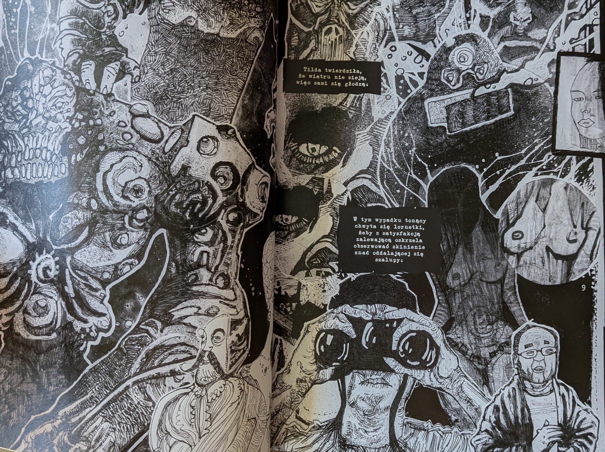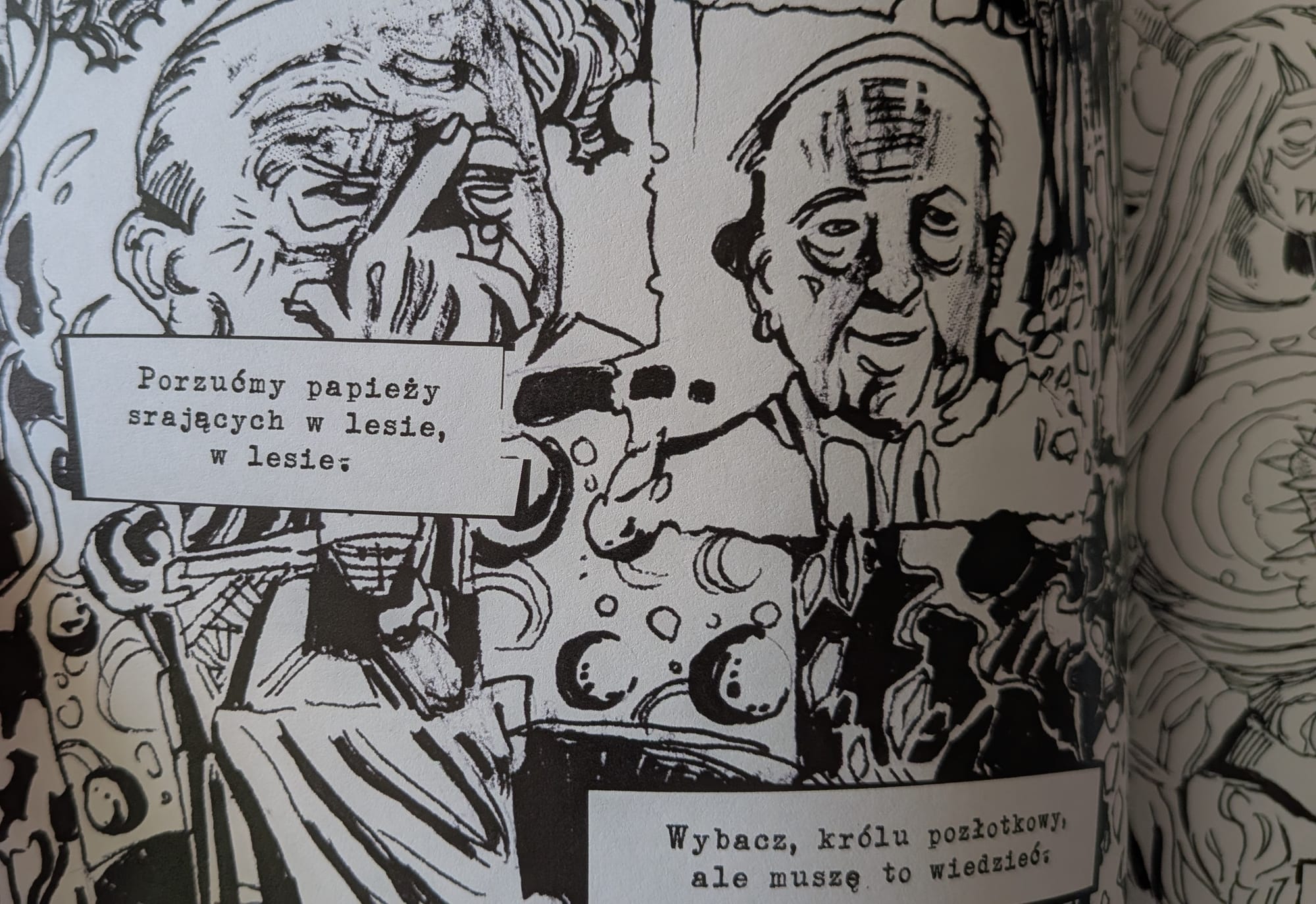 W efekcie „Konklawe świerszczyków” czytałem przede wszystkim jako zbiór wizualnych miniatur. Jako album rysunkowy sprawdza się bardzo dobrze – widać warsztat, pomysłowość i dużą swobodę autora w posługiwaniu się różnymi stylami. Jeśli jednak ktoś szuka w komiksie klasycznej narracji albo historii z wyraźnym początkiem i końcem, może się tu poczuć trochę zagubiony.