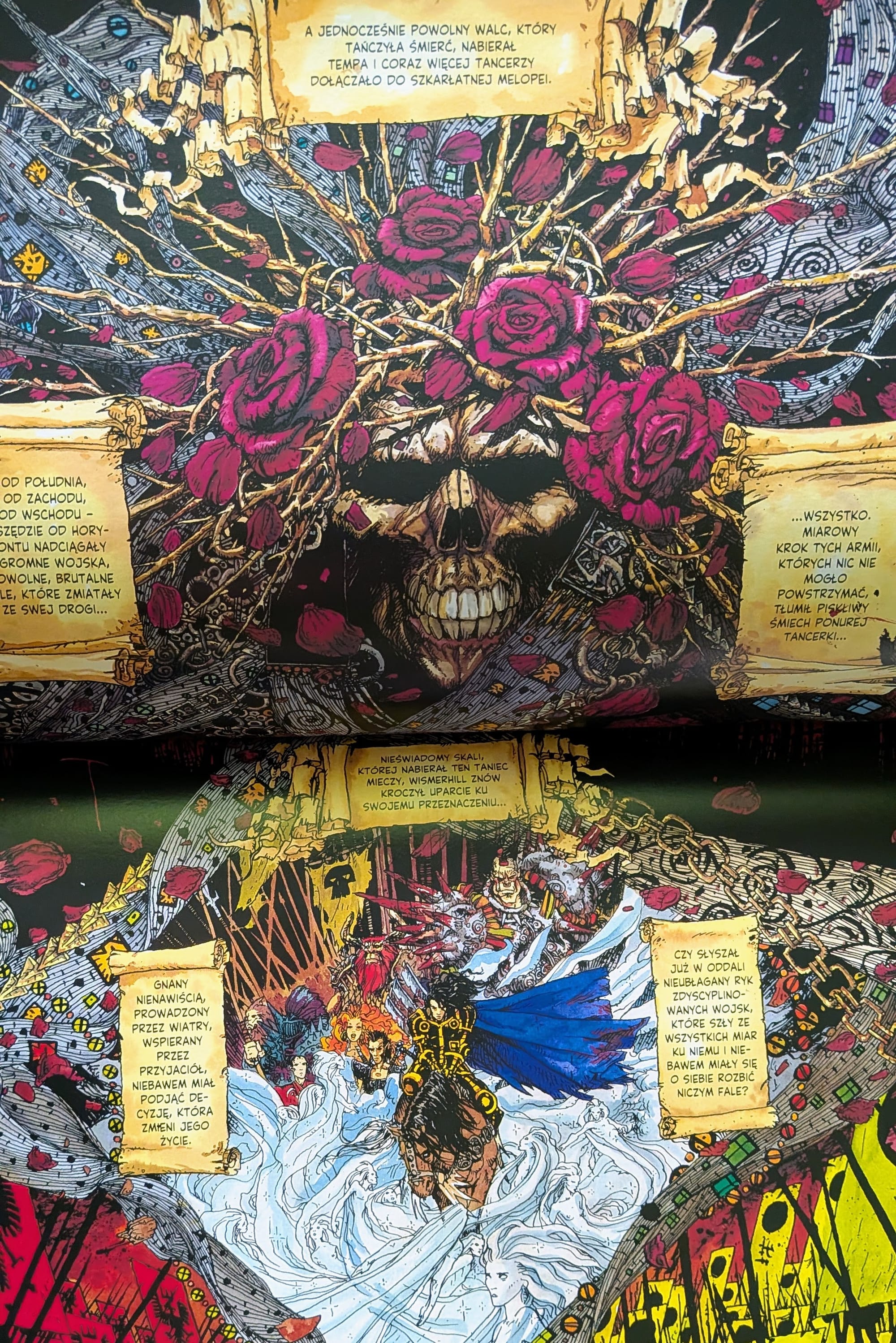 Najbardziej widowiskową częścią tomu jest „Szkarłatny taniec". To miejsce bezwzględnej batalii zajmującej połowę albumu - komiksowa jatka w wielkiej skali, pełna szarż, potworów, magii i śmierci. Niekoniecznie przejrzysta, niekoniecznie subtelna, ale robiąca wrażenie rozmachem.
