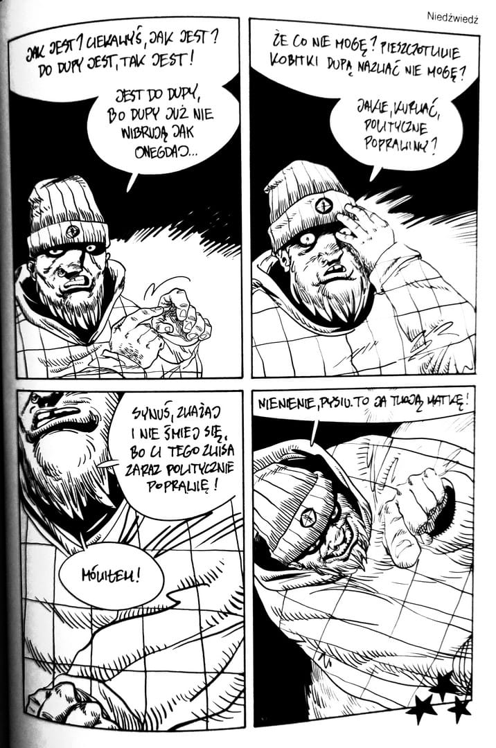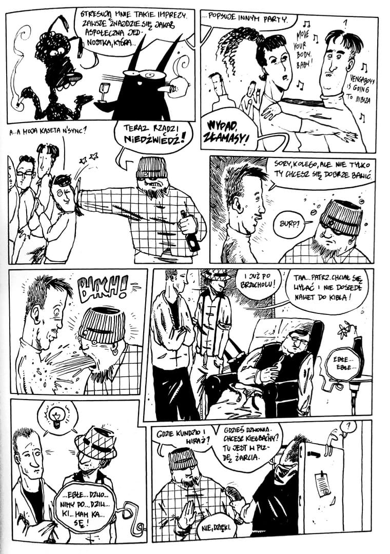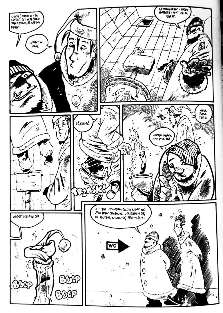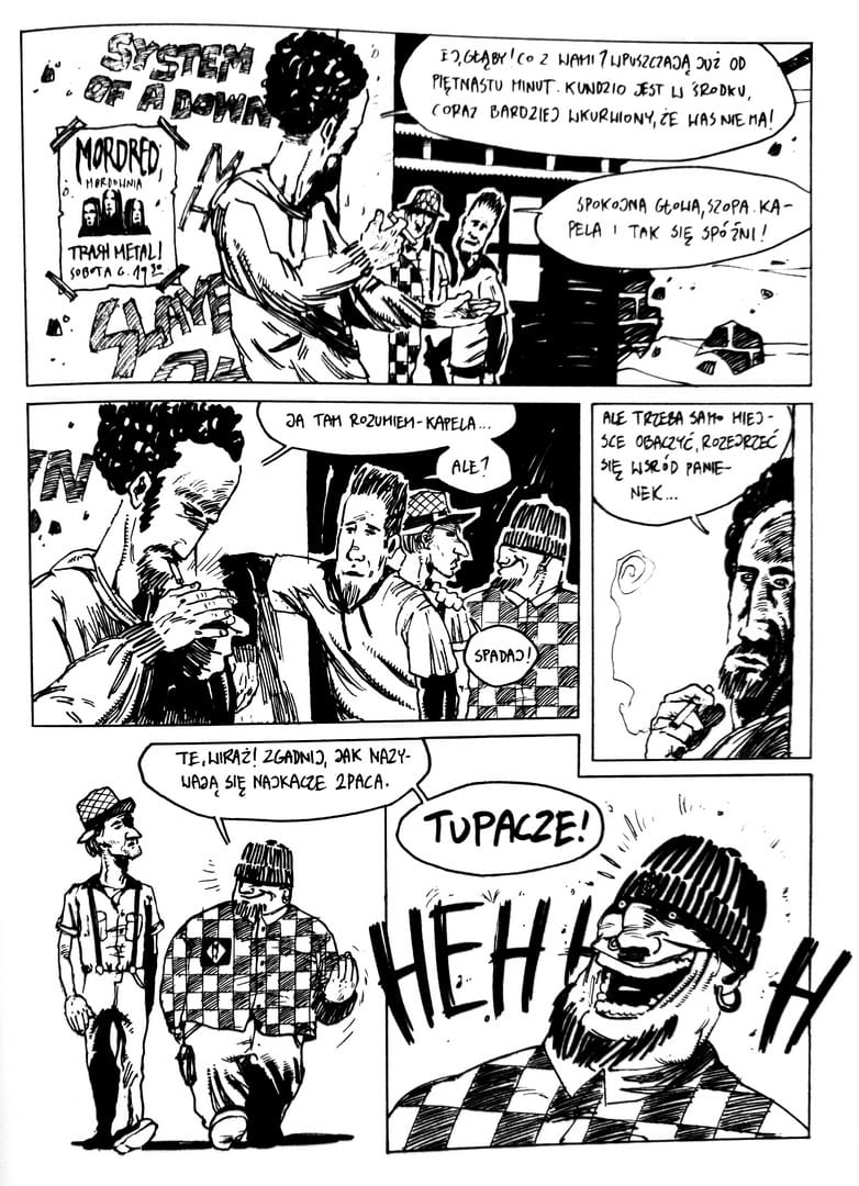 Ale z drugiej strony to komiks bardzo autentyczny. Ma duszę. Ogromną zaletą jest uniwersalność emocji – przyjaźń, lojalność, strach przed dorosłością są ponadczasowe. Samotność, szukanie sensu, miłość, wątpliwości, które czasem kończą się wpierdolem, oraz więzi, które przetrwają wszystko — nawet zdradę za paczkę fajek. Humor jest cięty, ironiczny, momentami czarny jak kawa bez mleka, ale zawsze w punkt. Ten komiks potrafi rozśmieszyć do łez i jednocześnie wbić szpilę pod żebro.