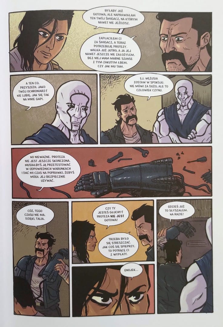 Dialogi są surowe, oszczędne, czasem rwane, ale spełniają swoje zadanie. Momentami jednak miałem wrażenie, że przydałoby się więcej ekspozycji i głębszego wglądu w przedstawiony świat.