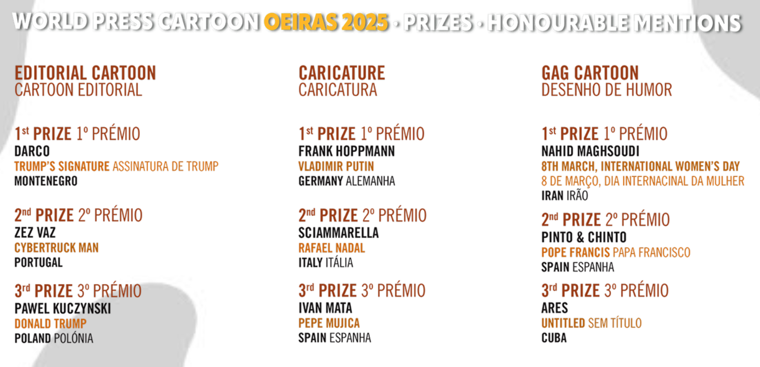 Tegoroczny Grand Prix trafił do Darka Drljevicia (Darco) z Czarnogóry za „Trump’s Signature”. W pozostałych konkurencjach triumfowali Nahid Maghsoudi z Iranu (Gag Cartoon) oraz Frank Hoppmann z Niemiec (Caricature). Drugie miejsce w karykaturze zajął Agustín Sciammarella, a trzecie — Ivan Mata za karykaturę „Pepe Mujica”.