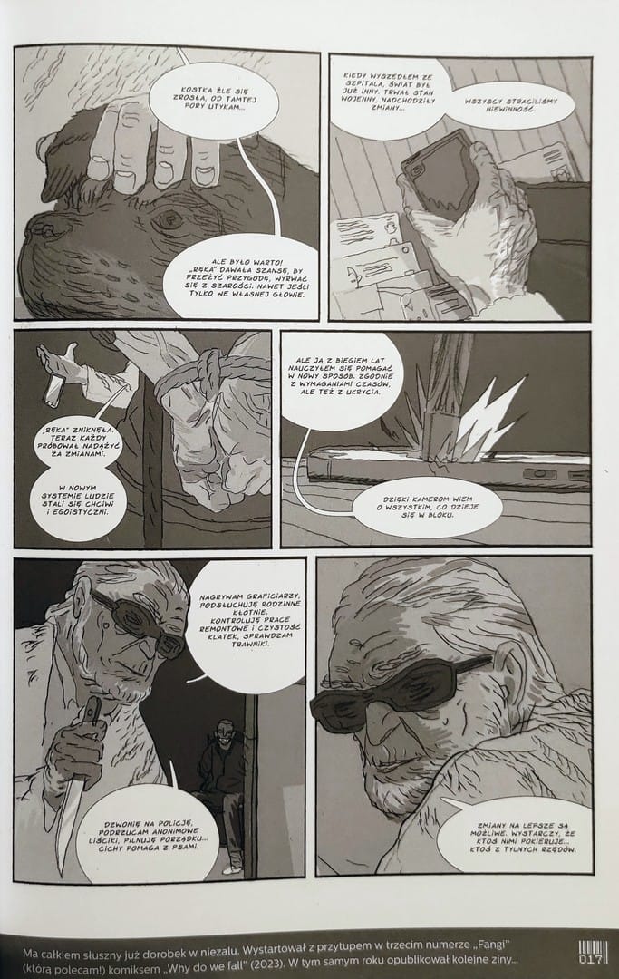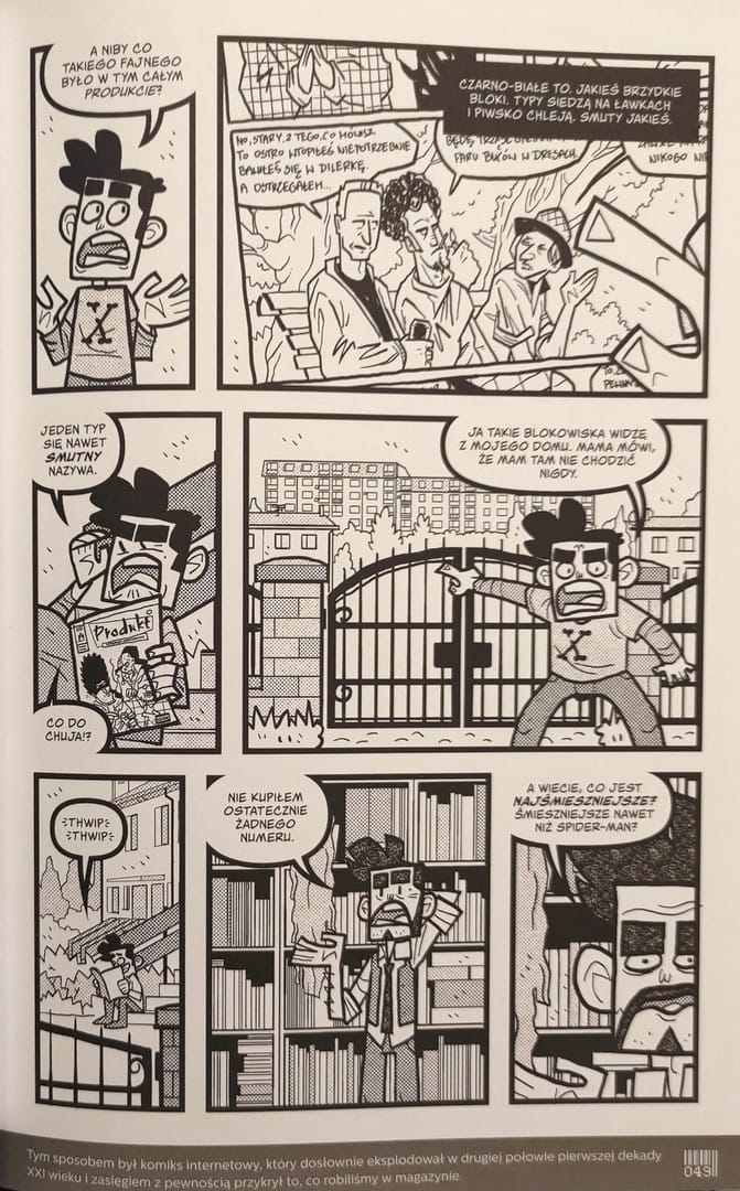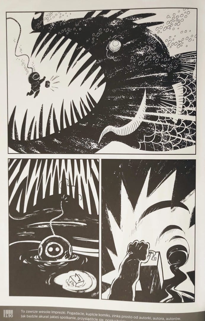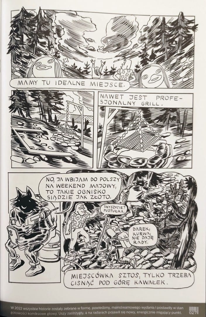 Mamy tu oczywiście też solidną część publicystyczną, którą ogarnął nam Łukasz Mazur oraz inni zacni literaci. Teksty nie są zapchajdziurami, a wnoszą kawał dobrej publicystyki, uzupełniając część komiksową. Felietony, refleksje, rozmowy o kondycji komiksu i jego społecznej roli — wszystko napisane z werwą i humorem, bez moralizowania.