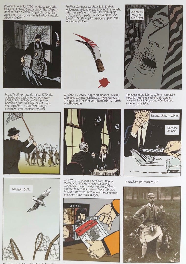 Jeśli chodzi o samą historię zawartą w komiksie, to w centrum tej konstrukcji stoi sir William Gull — autentyczna postać historyczna, nadworny lekarz królowej Wiktorii. Zimny, metodyczny, przekonany o własnej misji. U Moore’a staje się kimś więcej niż człowiekiem. Jest kapłanem porządku patriarchalnego. Fanatykiem wierzącym, że Londyn to świątynia zbudowana na geometrii, symbolach i masońskiej tradycji. Gull w komiksie to nie tylko zabójca. To wizjoner. Uważa, że jego czyny są rytuałem mającym przywrócić „boską hierarchię”.