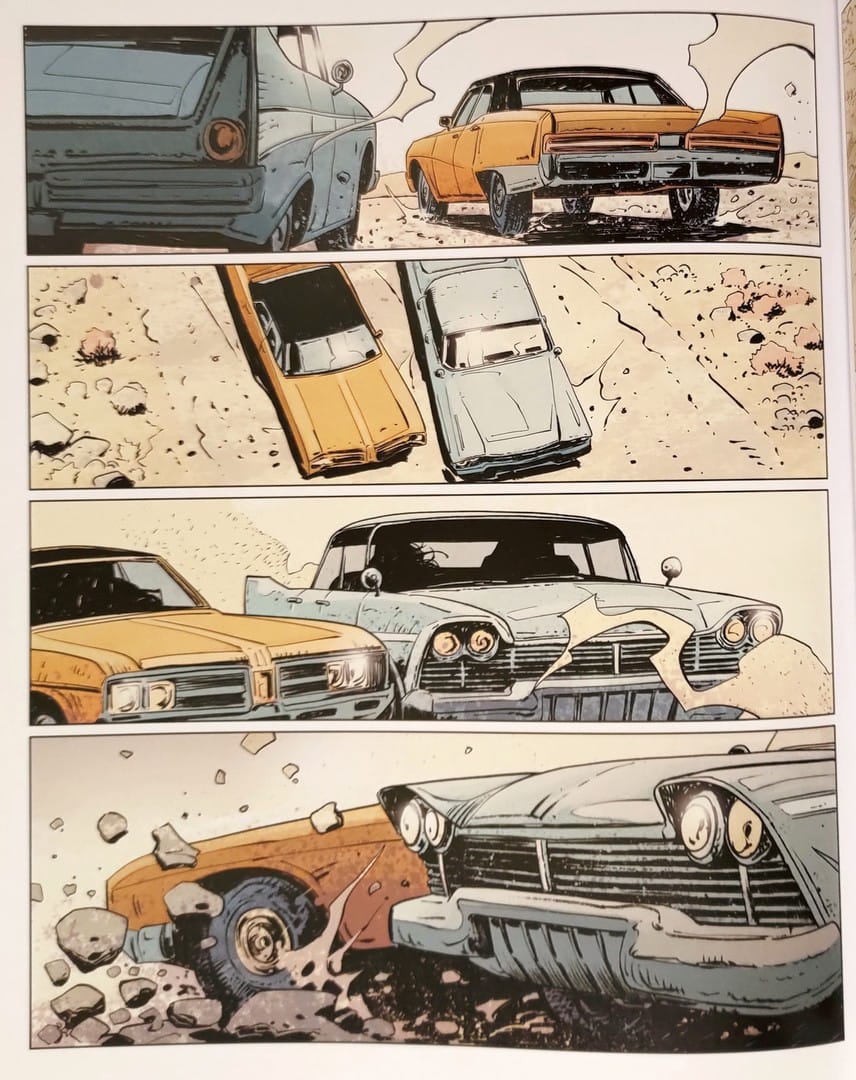 Dynamika kadrów to najwyższa szkoła filmowego storyboardu. Autor przeplata szerokie panoramy pustyni z klaustrofobicznymi zbliżeniami, szczególnie w trakcie wybuchów przemocy. Kadry są asymetryczne, pełne energii - nawet rozmowy statyczne tętnią napięciem. W scenach akcji rytm jest tak intensywny, że niemal słychać dźwięki wystrzałów.