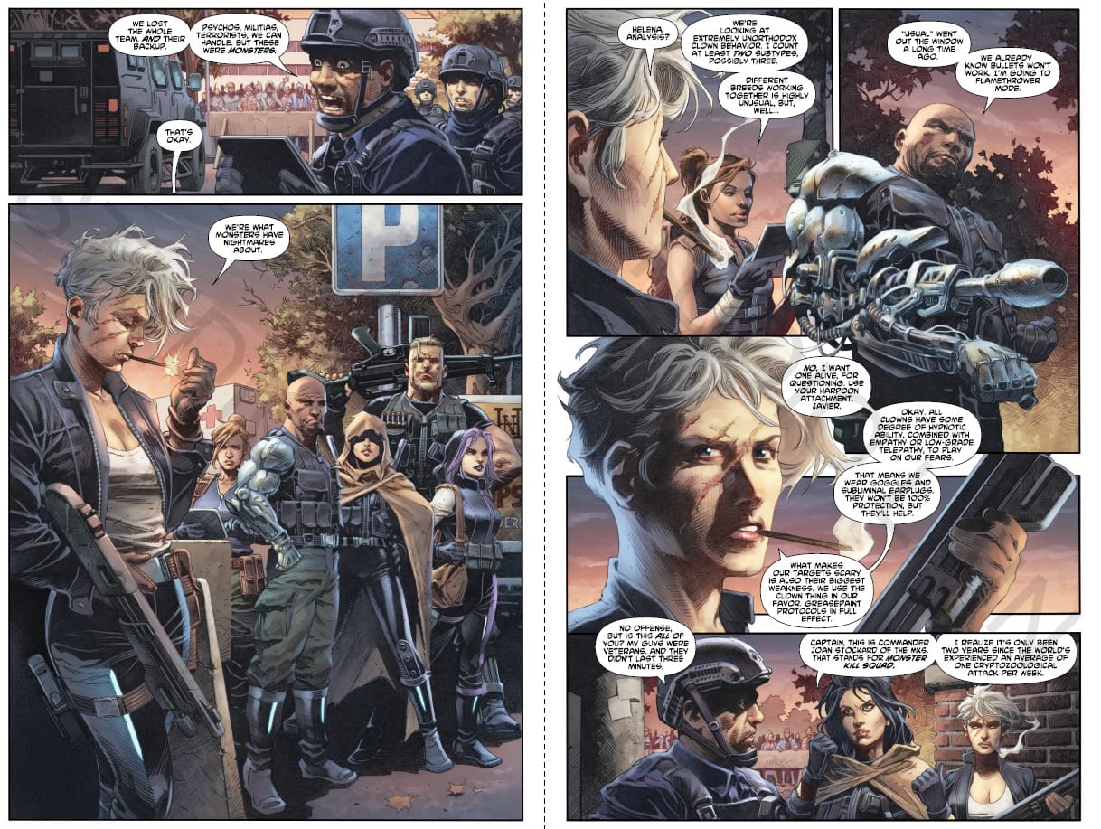 „Monster Kill Squad" to czteroczęściowa seria opublikowana przez Bad Idea we wrześniu 2021 roku. Fabuła opowiada o świecie, w którym ataki kryptozoologicznych stworów z rzadkich incydentów zamieniły się w codzienność. W odpowiedzi rząd USA powołuje tytułową jednostkę – ekipę najgroźniejszych specjalistów od eliminowania wszystkiego, co chodzi, pełza, lata albo kryje się w cieniu. Klimat komiksu to mieszanka horroru kryptozoologicznego z militarną akcją, utrzymana w dość brutalnym tonie.