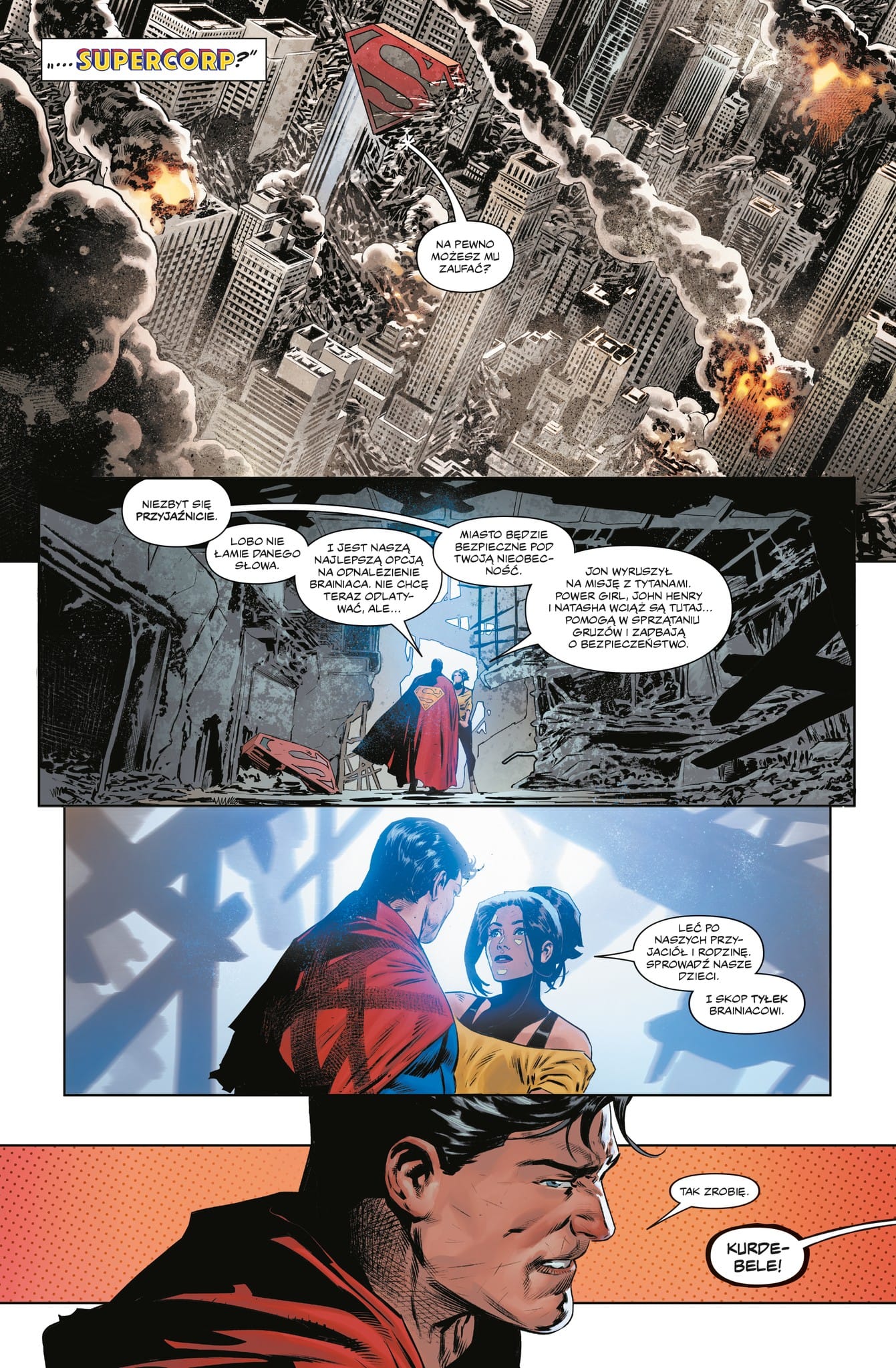 W centrum wydarzeń znajduje się inwazja legendarnego kolekcjonera światów, który tym razem nie przybywa sam. Brainiac dysponuje potężną armią Czarnian – rasy, z której wywodzi się nieobliczalny Lobo. Metropolis staje się polem bitwy o niespotykanej skali. Mimo ogromnego rozmachu i licznych scen walki, album pozostaje spójny. Każdy z zeszytów, od „Action Comics” po numery głównej serii „Superman”, stanowi logiczny element większej układanki. Williamson uniknął wrażenia przypadkowości, serwując czytelnikom historię, w której wszystkie tryby pracują na rzecz głównej intrygi, nie rozbijając przy tym dynamiki lektury.