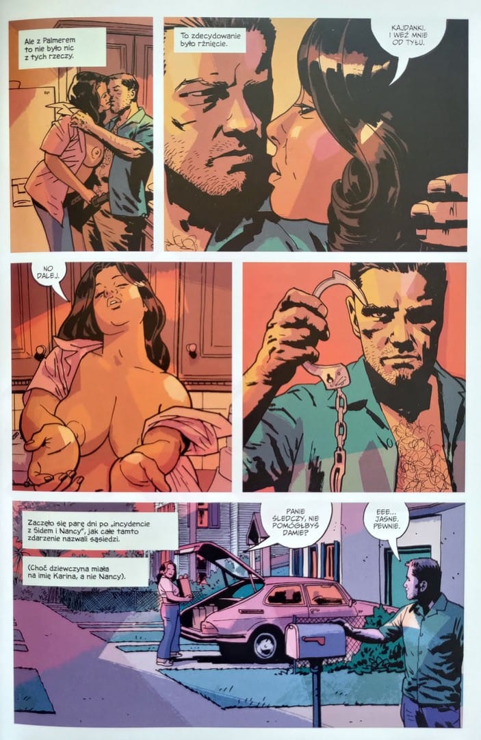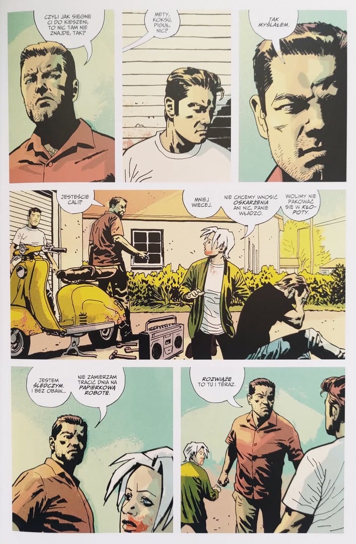 Sean Phillips jest w najwyższej formie. Jego kreska łączy klasyczny realizm z filmowym kadrowaniem. Każda plansza wygląda jak kadr z filmu noir nakręconego w upalne popołudnie. Obrazy doskonale budują klimat opowieści. W oczach postaci czai się zmęczenie, w rysach ich twarzy – historia, której nie da się już odkręcić.