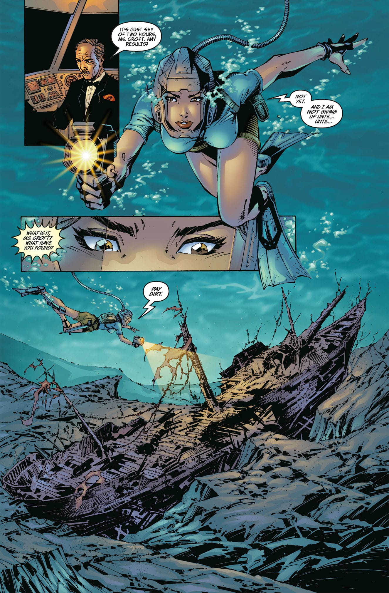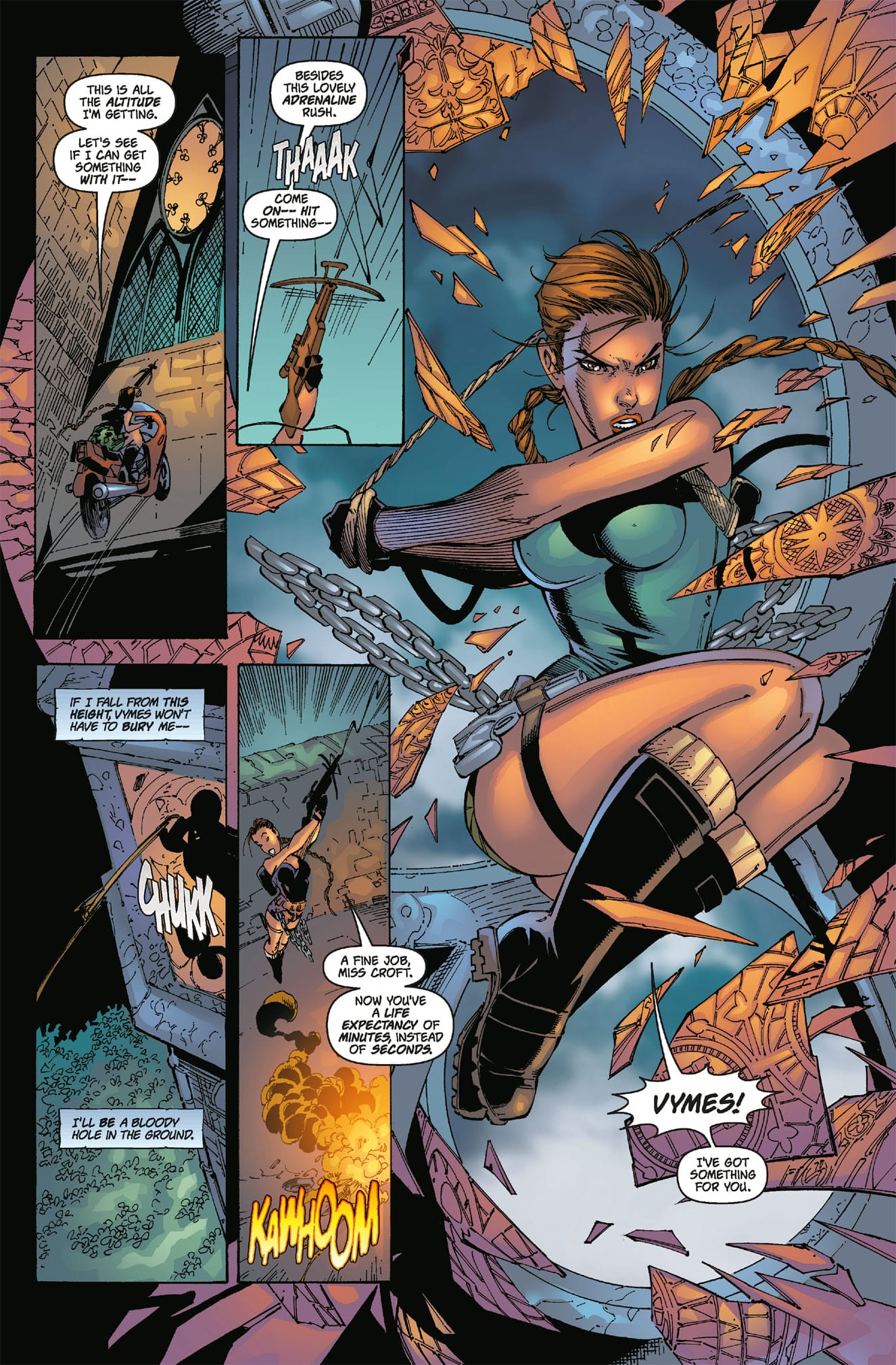 Jak podaje Dark Horse, w środku śledzimy Larę Croft między innymi w Arizonie, gdzie szuka legendarnej kopalni złota Lost Dutchman’s Gold Mine, w Ameryce Południowej w pogoni za El Dorado oraz w Nowej Zelandii, gdzie bohaterka poluje na pięciotysięcznoletni mistyczny amulet. Po drodze pojawiają się megalomańscy biznesmeni, starożytne moce, przeklęte artefakty i cała galeria przeciwników, która była znakiem rozpoznawczym ery Top Cow – tej najbardziej „komiksowo spektakularnej” odsłony „Tomb Raidera”.