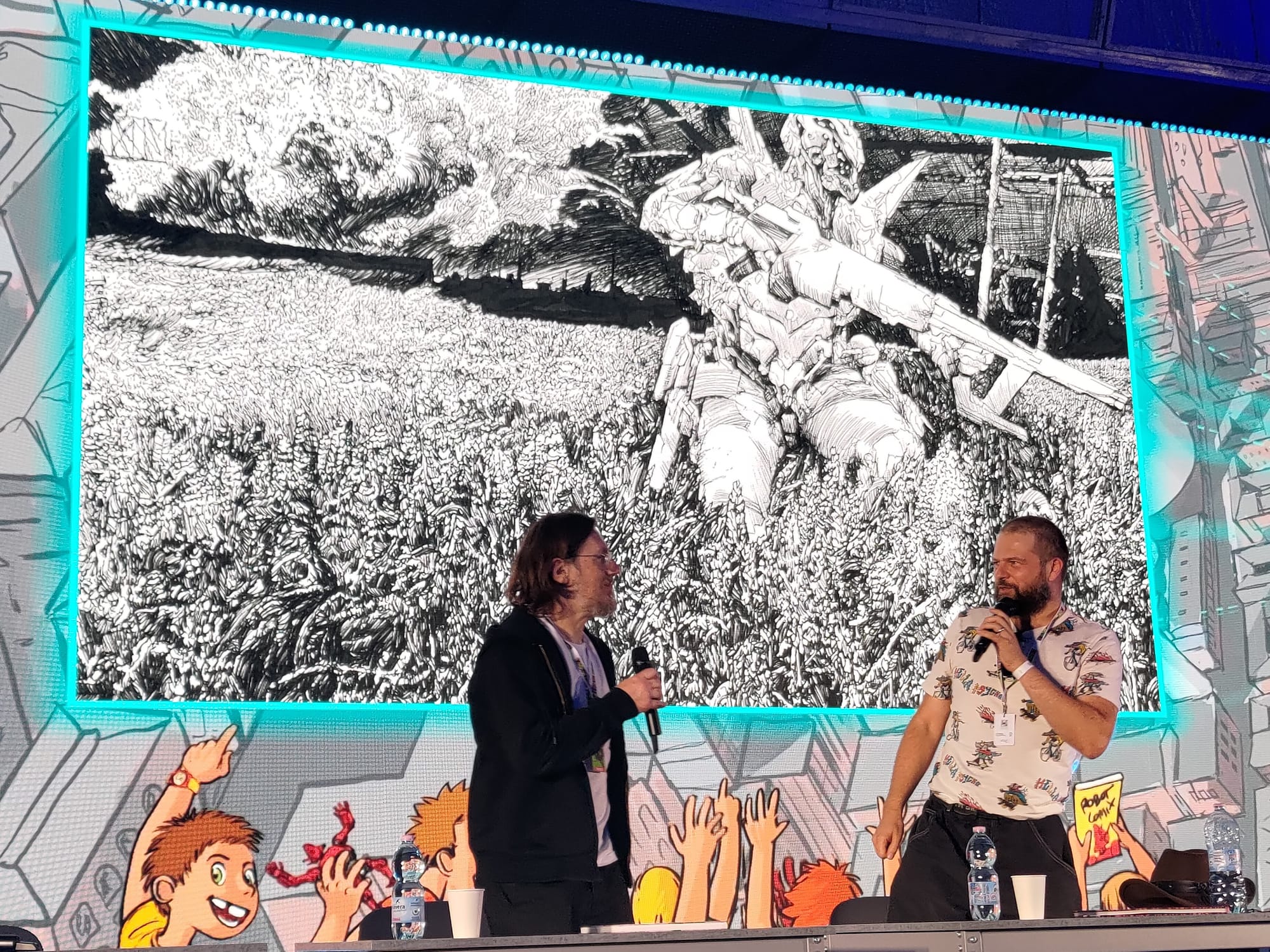 Na MFKiG Przemysław Truściński opowiadał, jak zderzył własną bezsilność wobec wojny z narzędziami, które zna najlepiej. „Ubrałem to w cyberpunk, a to co potrafię to stworzenie światów fantastycznych… to jest dla mnie pretekst i pewna przykrywka, żeby opowiadać o tej wojnie, o moich emocjach z tym związanych i wspieraniu Ukrainy” – mówił.