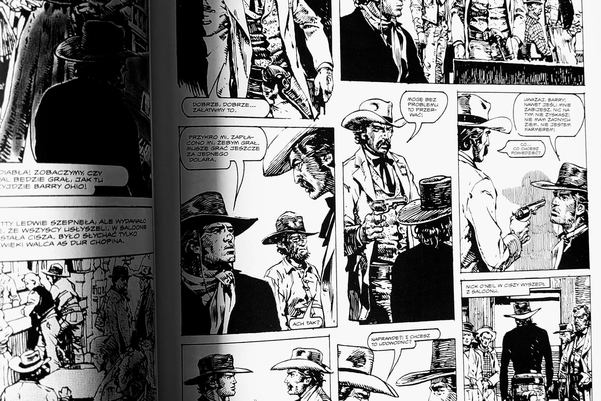 Ten kontekst jest tu kluczowy. Bo „Upał w Tombstone" to owoc tej pierwszej, westernowej fascynacji – historie powstawały w latach 70. i mają dziś na karku pół wieku. Nie da się tego czytać tak, jakby wyszło wczoraj. Ale nie w tym rzecz.