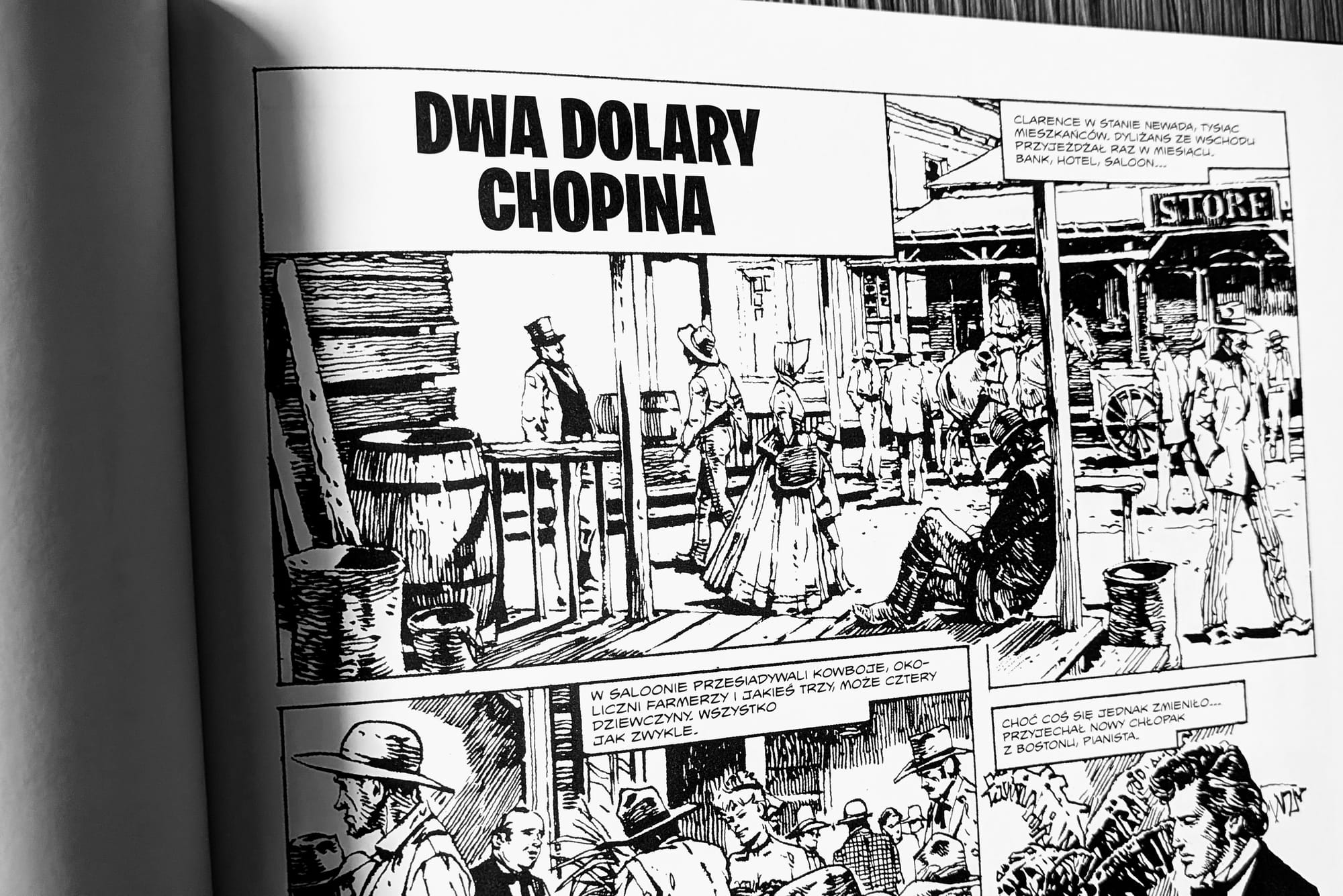 W środku osiem historii: „Antyczne przekleństwo", „Dwa dolary Chopina", „Duchy z wosku", „Kochankowie z przeklętego zamku", „Colty już nie strzelają", „Ostatnia bitwa", „Upał w Tombstone" i „Śmierć na końcu ścieżki". I tu pierwszy zgrzyt – tytułowy tom jest mylący, bo tylko część opowiadań to klasyczny western. Co, paradoksalnie, okazuje się największą zaletą albumu.