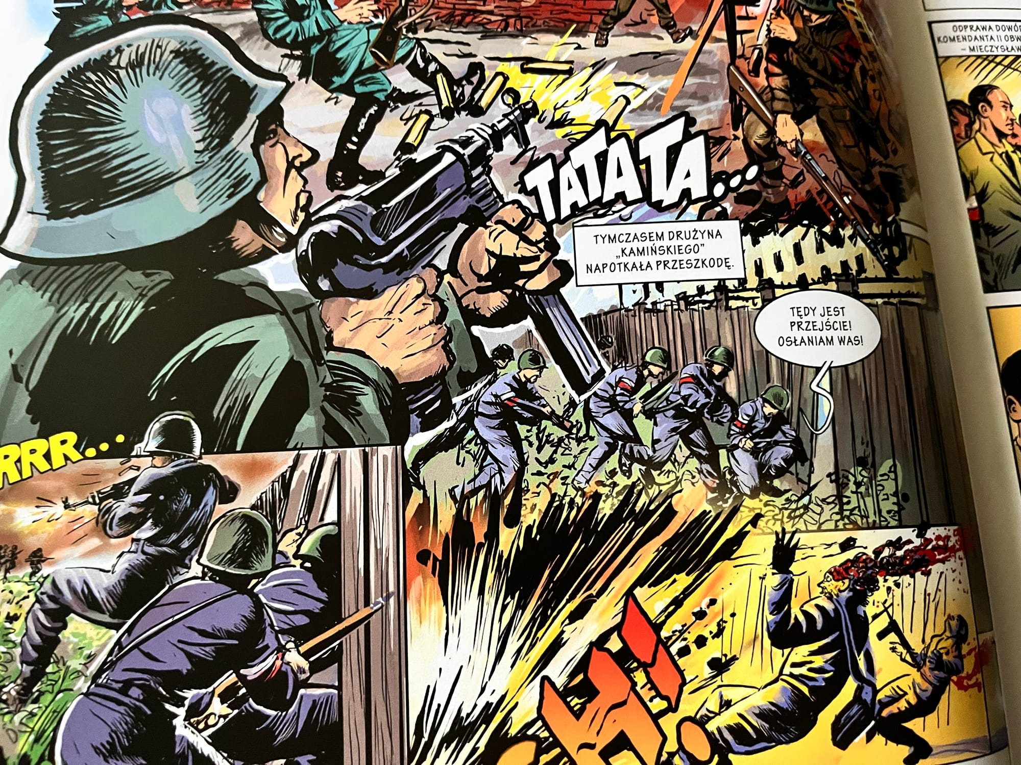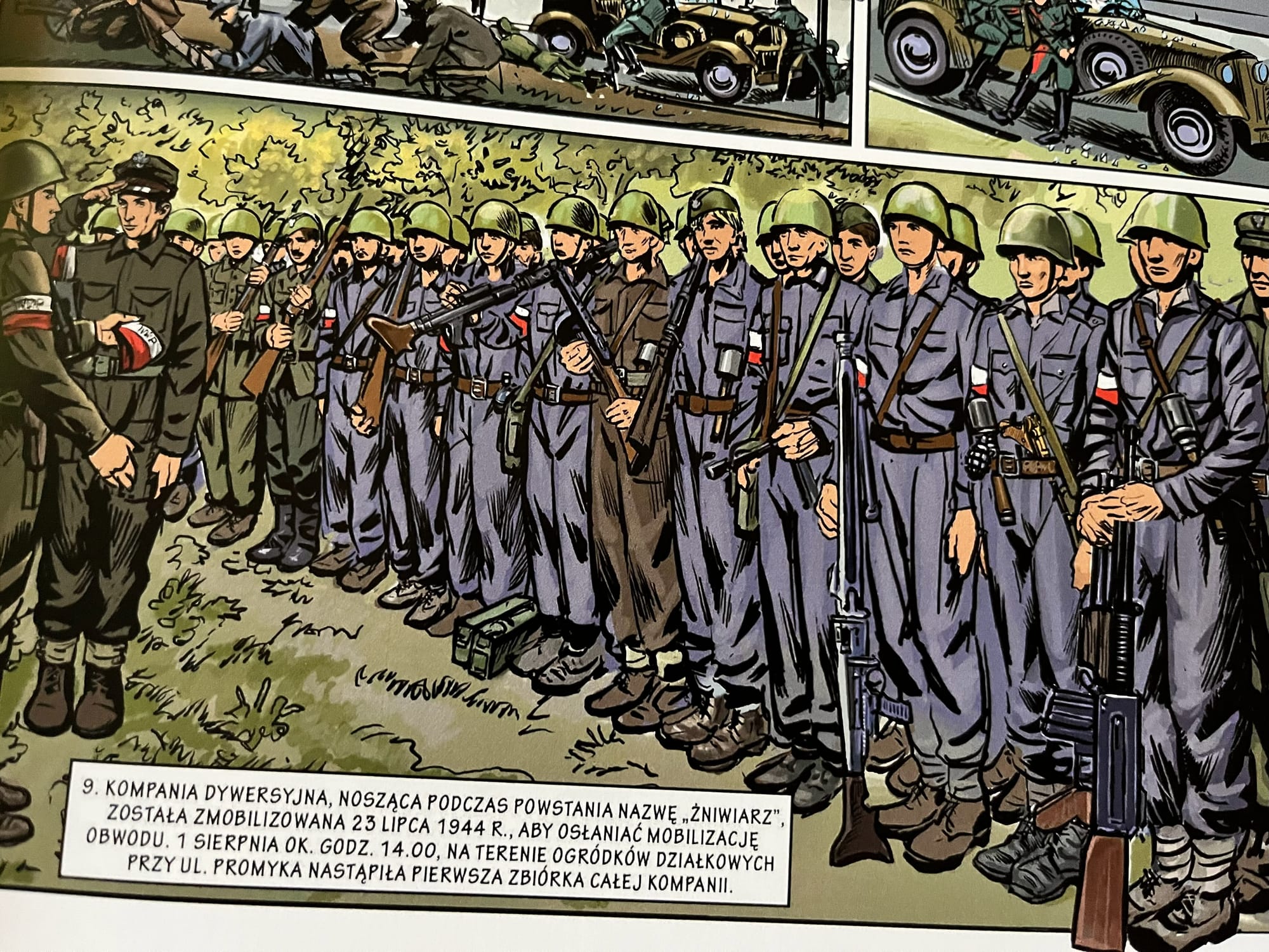 Co to oznacza w praktyce? Że obok faktów znanych z historii czytelnik dostaje całą masę detali z codziennego życia pod okupacją, przygotowań do Powstania i szczegółowego przebiegu walk na Żoliborzu. Narratorem jest dziewiętnastoletni wówczas Wiesław Klempisz “Brzeziński”, żołnierz 9 Kompanii, zgrupowania “Żniwiarz”, którego wspomnienia posłużyły za materiał do komiksu. Na marginesie warto dodać, że wcześniej ukazała się książka pod tym samym tytułem - stanowiąca znacznie obszerniejszą relację. Siłą rzeczy komiks to medium, które musi iść na kompromis między objętością, a zawartością treści.