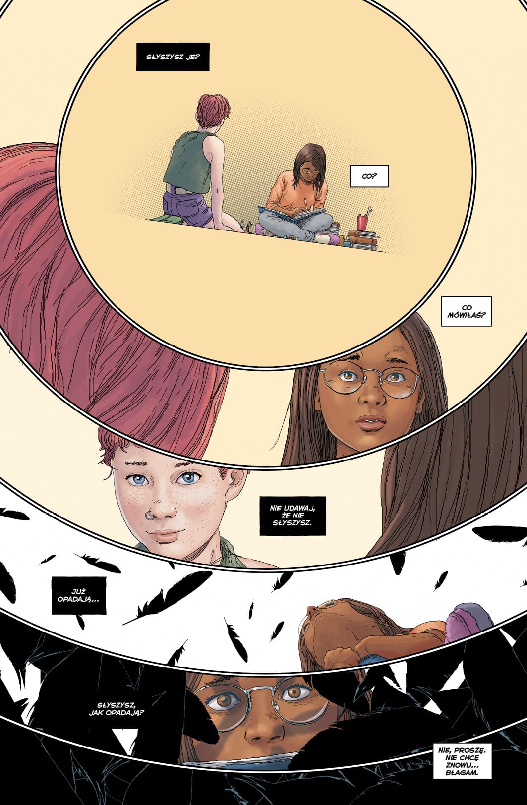 Dziesięć tysięcy czarnych piór to kolejna po Przejściu odsłona ambitnego uniwersum grozy, znanego jako Mity Kościanego Sadu - dzieło autorów znanych z takich tytułów, jak Gideon Falls czy Pierwotny.