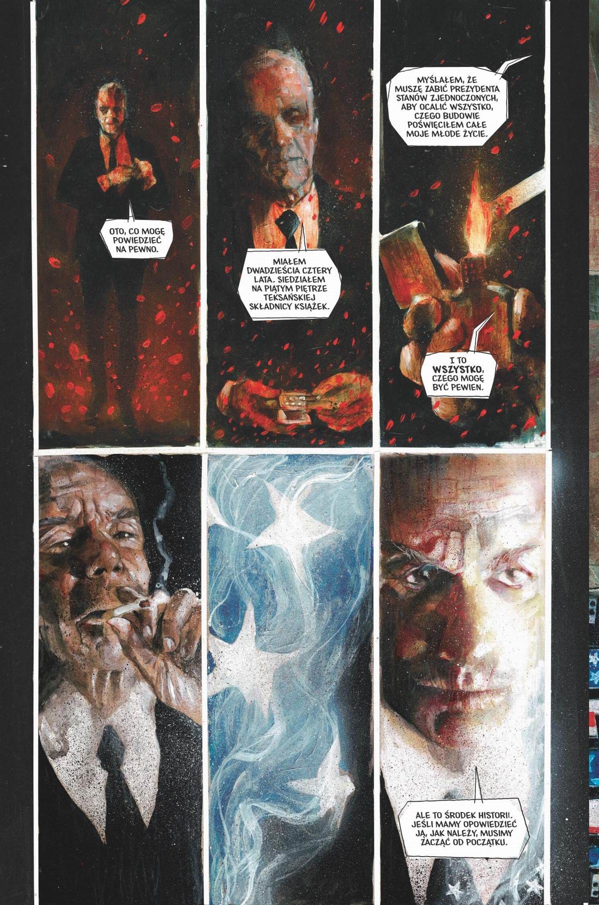 Wielokrotny zdobywca Nagrody Eisnera, scenarzysta JAMES TYNION IV (w0rldtr33, Miły dom nad jeziorem) i nominowany do Nagrody Eisnera rysownik MARTIN SIMMONDS (Universal Monsters: Dracula) wraz z grupą gości specjalnych ujawniają prawdę stojącą za zamachem, o którym słyszał cały świat. Uznana rysowniczka ALISON SAMPSON (Sleeping Beauties) oraz uhonorowana Nagrodą Eisnera kolorystka JORDIE BELLAIRE (Redlands) połączyły siły w niezwykłej opowieści o wyjątkowej amerykańskiej ikonie.